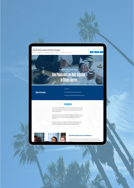 Engaging with the Kroc School can empower you to: develop the skills to drive meaningful social change; tackle complex global challenges with innovative solutions; and become a leader in building more just, peaceful, and resilient communities.